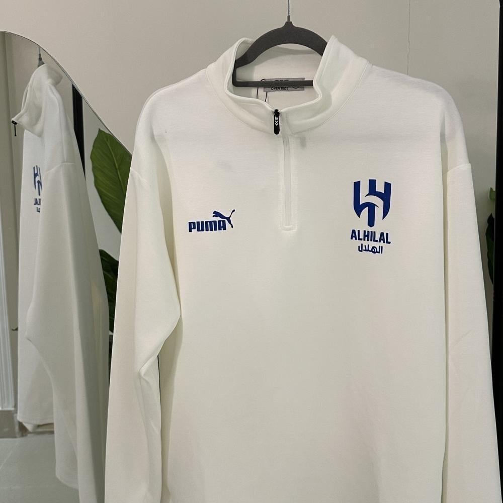 البلوفر جاي بتصميم فخم وبسيط بنفس الوقت. اللون الأزرق الملكي المعتاد طاغي، مع لمسات بيضاء ناعمة وشعار نادي الهلال بطريقة رهيبة أما الخامات؟ خيال! ناعم ودافئ، كأنه مصمم عشان يدفّيك في أجواء الرياض الباردة ❄️. يا رجل، البلوفر ما هو مجرد قطعة لبس، هو طريقة تعبر فيها عن انتمائك للنادي بستايل عصري وكاجوال 👌.