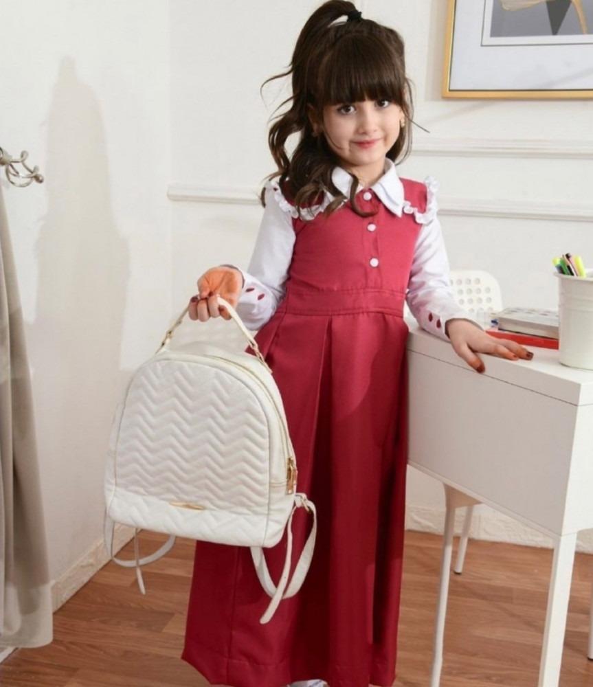 مريول ابتدائي بفيونكة ناعمة عملي ومريح وبخامة تتحمل اللبس اليومي.